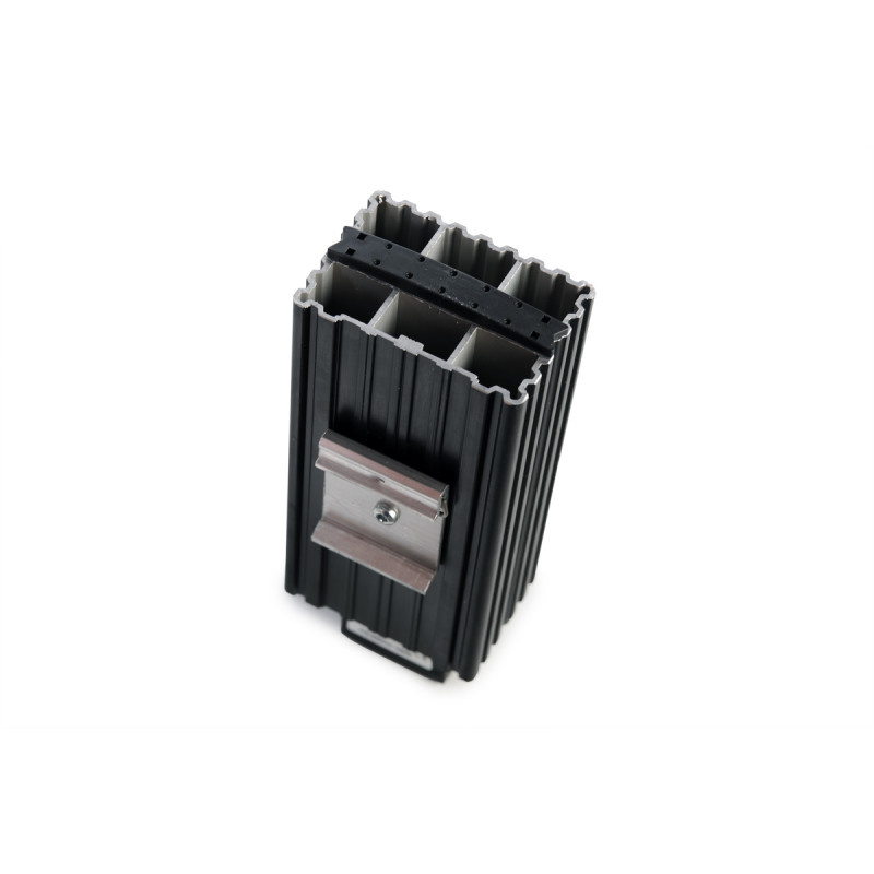 Нагреватель полупроводниковый 150 Вт/220В предназначен для длительного поддержания требуемой температуры внутри телекоммуникационных и электротехнических шкафов. Мощность нагревателя 150Вт, пусковой ток максимум 9А. Продолговатый корпус (В.Ш.Г.) 265 x 70 x 60 мм. из алюминиевого профиля предусматривает естественную тягу, позволяет равномерно прогревать шкаф. Нагревательный элемент – позистор, ограничивающий максимальную температуру, но не исключающий использование терморегулятора. Нагреватель устанавливается на DIN-рейку 35 мм. Подсоединяется трехполюсным зажимом. Предусмотрено использование гибких проводов с наконечниками от 0,5 до 1,5 мм, жестких проводов от 0,5 до 2,5 мм. Температура эксплуатации и хранения от -45 до +70°C. Степень защиты IP20. Цвет черный, вес 0,7 кг, поставляется в индивидуальной упаковке.