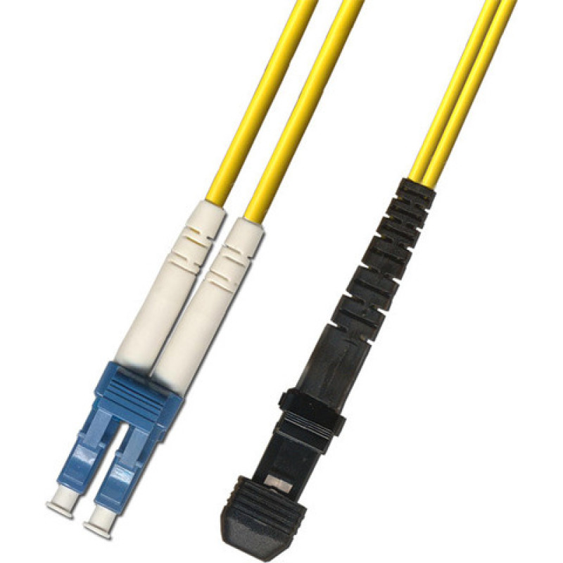Коммутационный шнур оптический Hyperline, Duplex LC/MTRJ (UPC), OS2 9/125, LSZH, 3м, d 2мм, синий хвостовик, цвет: жёлтый