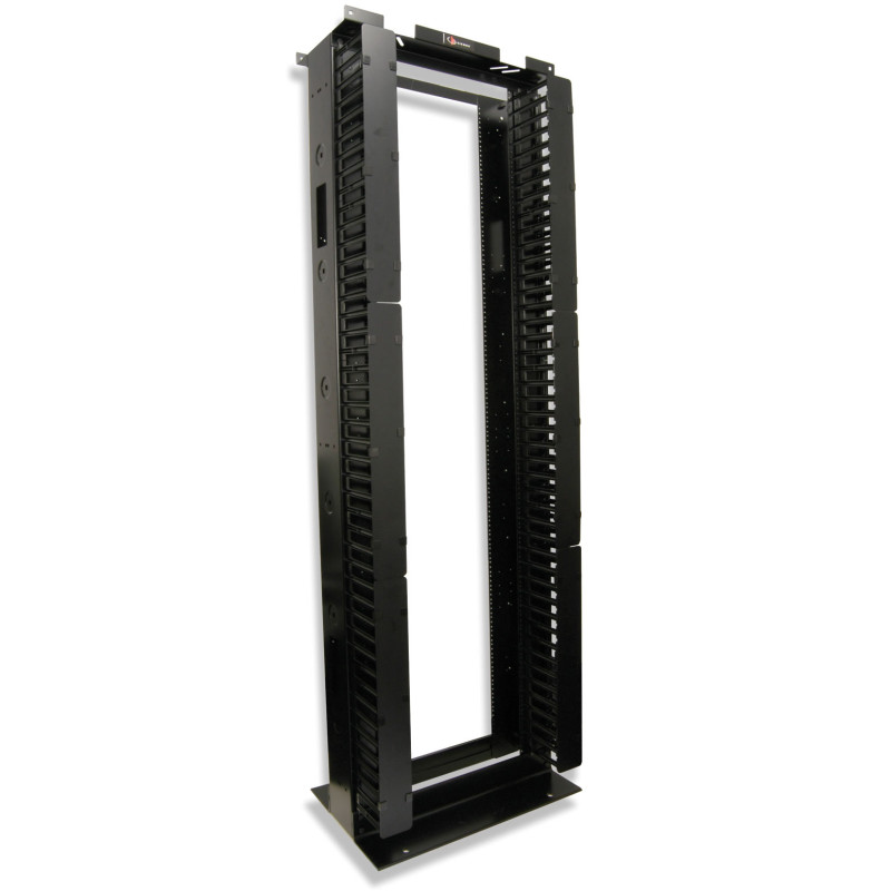 Однорамная 19" стойка Siemon RS3-07-S предназначена для монтажа активного и пассивного оборудования в хорошо вентилируемых помещениях, к которому нужен свободный и быстрый доступ с любой из сторон. Конструктив стойки позволяет прокладывать кабель любой конфигурации. На стойке по обе стороны расположены 10 (по 5 с каждой стороны) крюков, 10 кабельных органайзеров и 10 петель, а так же специальные втулки для удобства крепления кабеля и оборудования. Наличие вертикальных боковых шин. Высота стойки черного цвета 45U. Для крепления оборудования к полу предусмотрены специальные отверстия в основании, а так же в задней и боковых ее частях, что позволяет обеспечить электропитанием активное оборудование, вмонтированное в стойку. Для открытой стойки 19" также доступна широкая линейка аксессуаров: стационарные/выдвижные полки, ящики, кабельные организаторы и т.д.