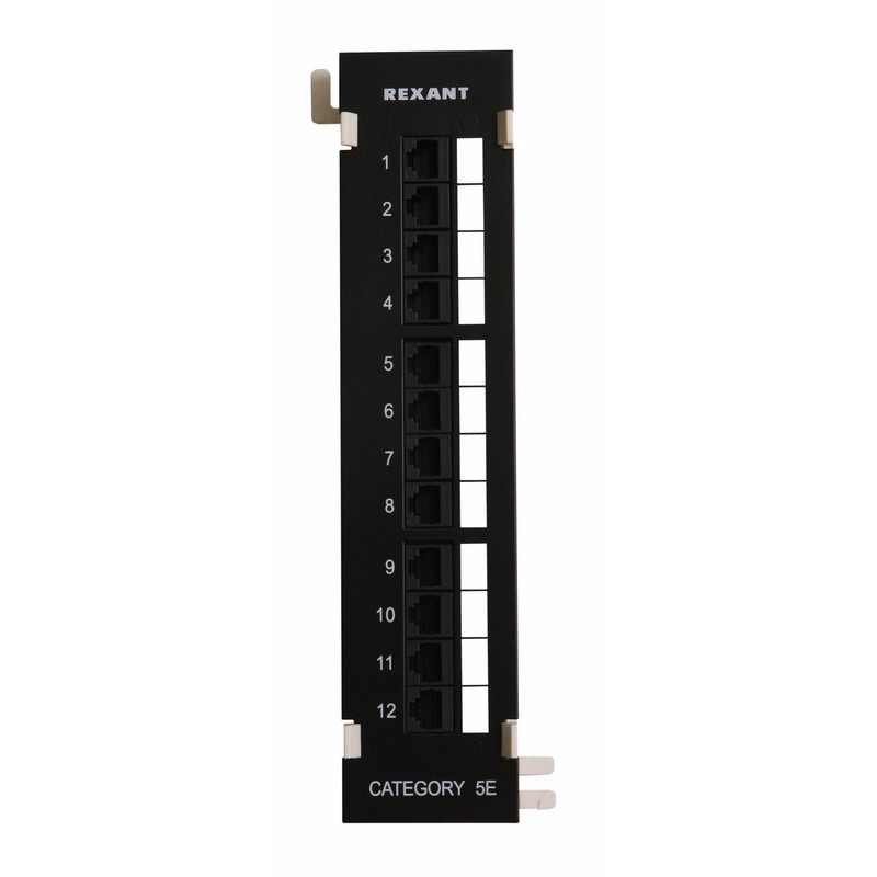 Коммутационная патч-панель Rexant, настенная, 2HU, 12xRJ45, кат. 5е, универсальная, неэкр., цвет: чёрный, (04-0020)