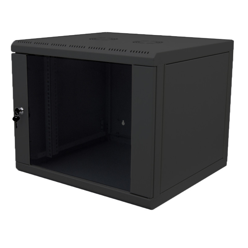 Купить Шкаф телекоммуникационный настенный Canovate WSN, 19, 9U, 488х600х560 (ВхШхГ), дверь: стекло, разборный, цвет: чёрный, (боковые панели открываются изнутри) WSN-9-0965F - цена 15910.00 р.