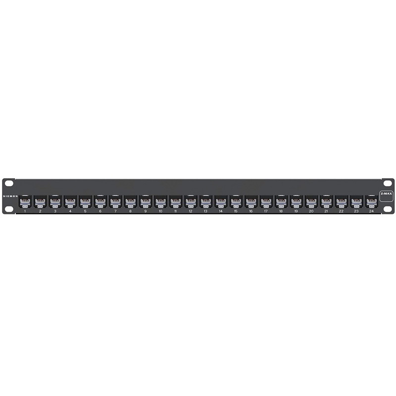 Коммутационная патч-панель Siemon Z-MAX, 19, 1HU, 24xRJ45, кат. 6A, универсальная, экр., встраиваемый, цвет: чёрный, (ZS-PF-24)