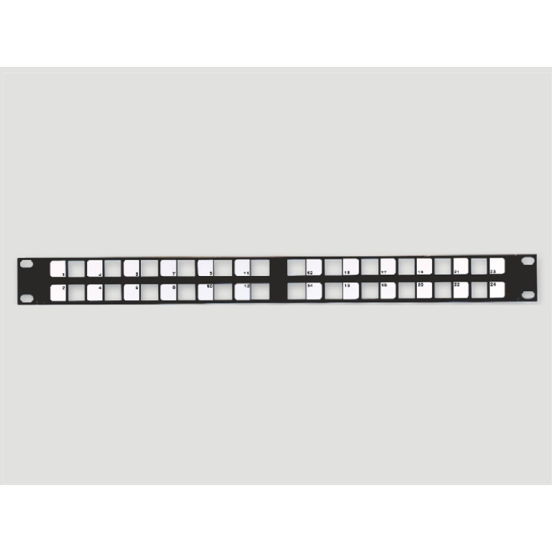 Экранированная коммутационная наборная патч-панель Eurolan, 19", 1HU, 24x keystone. Одна из составных частей структурированной кабельной системы (СКС). Коммутационная патч-панель представляет собой 24 соединительных разъёма расположенных на лицевой стороне панели. С тыльной стороны панели располагаются разъемы типа dual IDC, для заделки витой пары. Предназначена для установки в 19" оборудование, высота патч-панели составляет 1U. Относится к пассивному сетевому оборудованию. Поставляется черного цвета.
