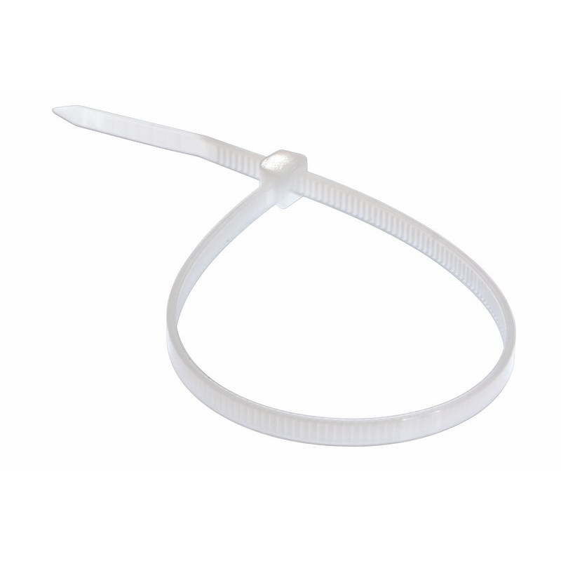 Хомут нейлоновый (кабельная стяжка) предназначен для крепления или обвязки в жгут кабелей и проводов, крепления гибких гофротруб, а также других предметов к несущей поверхности или для соединения между собой. Такая стяжка используются при проведении электромонтажных работ, при монтаже структурированных кабельных систем, для бытовых нужд, а также в других отраслях народного хозяйства. Представляет собой гибкую полоску из нейлона высокой прочности с замком на конце. - длина и ширина: 200 х 4мм; - прочность при растяжении: не менее 50 МПа; - модуль упругости при растяжении: 8000-11000 МПа; - высокое сопротивление к основаниям, маслам, смазочным материалам, хлоридным растворителям; - класс воспламеняемости: UL 94класс V-2 (самозатухающий); - не содержит галогенов; - тип: неразъемные, одноразового использования; - температурный диапазон использования: от -35? до +85?; - количество в упаковке: 100 шт. - цвет: белый