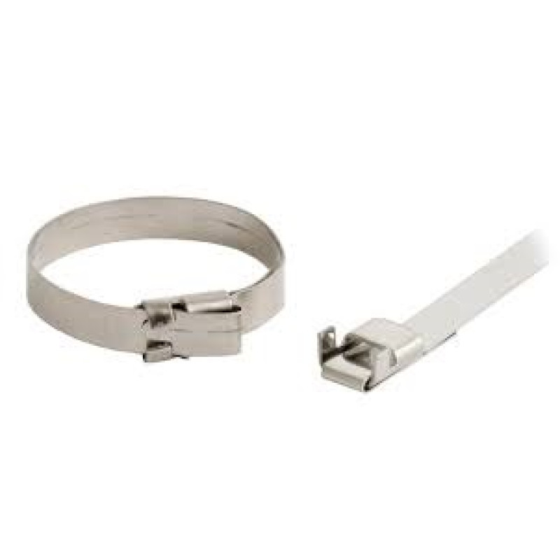Хомут металлический (кабельная стяжка) предназначен для крепления или обвязки в жгут кабелей и проводов, крепления гибких гофротруб, а также других предметов к несущей поверхности или для соединения между собой. Такая стяжка используются при проведении электромонтажных работ, при монтаже структурированных кабельных систем, для бытовых нужд, а также в других отраслях народного хозяйства. Представляет собой гибкую полоску из нейлона высокой прочности с замком на конце. - длина и ширина: 285 х 6 мм; - прочность при растяжении: не менее 50 МПа; - модуль упругости при растяжении: 8000-11000 МПа; - высокое сопротивление к основаниям, маслам, смазочным материалам, хлоридным растворителям; - класс воспламеняемости: UL 94класс V-2 (самозатухающий); - не содержит галогенов; - тип: неразъемные, одноразового использования; - температурный диапазон использования: от -35? до +85?; - количество в упаковке: 100 шт. Сталь AISI 410 нержавеющая сталь, которая упрочняется термообработкой, обладает высокой износостойкостью.